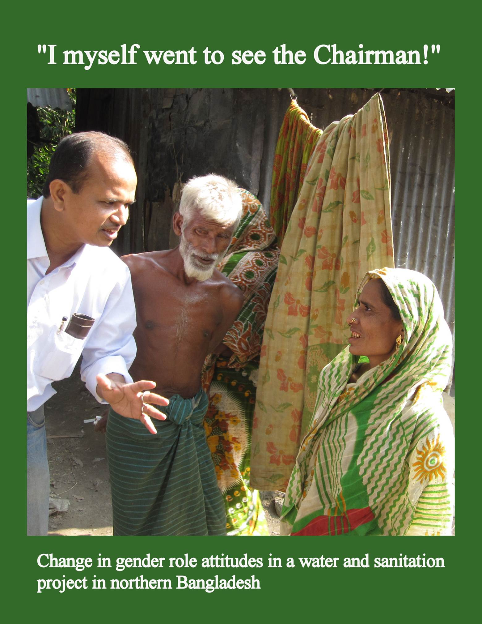 Monitoring systems occasionally incorporate elements of action research. A water and sanitation project in northern Bangladesh elaborated a Gender Analytic Framework to help organized public conversations on gender roles in household, village and local government. Trained volunteers facilitated sessions and recorded responses to 29 gender-related items in 988 villages during four years. "I myself went to see the Chairman!" (2014, together with several others) analyzes the change in gender role attitudes with the help of Rasch scales. The tool achieves two things: It provides a summary attitude measure out of a large heterogeneous material. It thus makes gender attitudes amenable to analysis in terms of community baseline attributes, WatSan project inputs and pre-existing local attitudes.